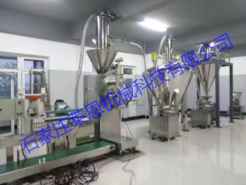 粉粒物料由投料槽通過1號真空輸送機進(jìn)入混料罐一,經(jīng)過混合完成后再經(jīng)2號真空輸送機進(jìn)入混料罐二,進(jìn)行二次混合完成后,在經(jīng)過3號真空輸送機將物料輸送至包裝及內(nèi),物料通過包裝機進(jìn)行包裝完成。整個物料轉(zhuǎn)運過程,物料都在密閉管道內(nèi)輸送,杜絕了粉塵對工作環(huán)境污染,減少車間粉塵揚塵,避免操作人員受粉塵的傷害,適用于制藥、食品、化工、電池等行業(yè)。